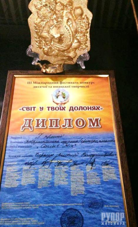 За сприянням депутата Житомирської обласної ради фракції УКРОП Віталія Науменка представники коростенської школи мистецтв ім. А.Білошицького взяли участь у ІІІ Міжнародний фестиваль-конкурс дитячої та юнацької творчості «Світ у твоїх долонях». Після звернення депутата коростенської міської ради фракції УКРОП Володимира Гуськова з депутатських коштів Віталія Науменка було виділено 10 тисяч гривень на поїздку до Києва та участь у конкурсі, який відбувся у період з 28 по 31 жовтня 2016 року. В категорії «Інструментальна музика, оркестри та ансамблі (вікова категорія профі)» коростенці посіли перше місце. «Я завжди підтримував і підтримую людей, котрі займаються творчістю, адже вони поширюють прекрасне, збагачують нашу духовність, розширюють наш внутрішній світ. Дуже приємно, що коростенці посіли перше місце та вкотре довели, що вони талановиті та обдаровані», - каже Віталій Науменко.