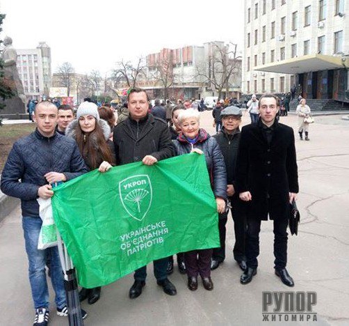 Житомирська обласна парторганізація "Українське об'єднання патріотів -УКРОП" разом з депутатами місцевих рад 14 березня, в День добровольця, долучилась до мітингу в підтримку блокади ОРДЛО. Кількасот громадських активістів прийшли під стіни ради до голови Житомирської облдержадміністрації Ігоря Гундича висловити своє невдоволення стосовно непідтримання торгівельної блокади. Також на зустріч з'явився голова Житомирської міськради Сергій Сухомлин. Народ зустрічав посадовців символічно - шинами. "На останній сесії обласної та міської рад депутати не підтримали звернення до Президента України, Верховної Ради України, Кабінету Міністрів України щодо підтримки торгівельної блокади окупованих територій Донбасу. Ми, патріоти своєї країни, не можемо мовчки дивитись на те, як на війні гинуть і водночас заробляють!", - зазначив голова Житомирського осердку партії "Українське об'єднання патріотів - УКРОП" Андрій Ковальов. Також були підняті питання стосовно неконтрольованих територій та звільнення деяких чиновників.