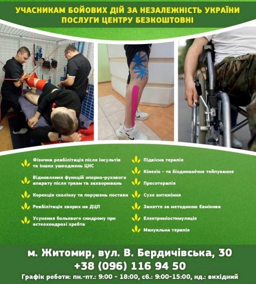 Центр Реабілітації у Житомирі продовжує приймати безкоштовно на комплексну реабілітацію військових