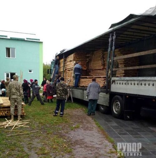 Житомирщина продовжує допомагати жителям Калинівки та відправляє матеріали, необхідні для жителів – чергову машину з дошками та шиферу направили до Вінницької області. Будівельні дошки, 400 листів шиферу та цвяхи передані жителям Калинівки вчора, 4 жовтня. До збору допомоги активно долучилися інвестиційні компанії області – «Кромберг енд Шуберт», ТОВ «Ферпласт-Україна», ТОВ «Євроголд», ТОВ «Грайф Флексіблс Україна» та ТОВ «Лагуна». Нагадаємо, що Житомирська область відправила 760 листів шиферу до Калинівки, 30 кубометрів каліброваної дошки, та 15 куб. м деревини.