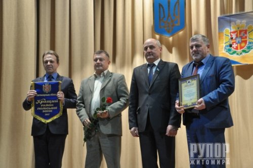 Працівники сільського господарства Житомирщини відзначили своє професійне свято. Привітали аграріїв сьогодні, 15 листопада, голова обласної ради Володимир Ширма та начальник управління агропромислового розвитку облдержадміністрації Руслан Кирилюк. «Житомирщина отримує врожаї завдяки вам і має гарні показники. Вітаю вас із наступаючим святом. Бажаю вам гарної погоди, щедрого врожаю», – привітав аграрії Володимир Ширма. Також він вручив кращим аграріям подяки від обласної ради. «У цей день хочеться вам усім подякувати, вклонитися за ваші невтомні руки, за ваш розум, який зробив із Житомирщини житницю нашої країни. Житомирщина має гарні показники – 5 місце по Україні за індексом виробництва товарної продукції агропромислового комплексу. Напередодні свята, хочу побажати миру, злагоди, благополуччя вам та вашим сім’ям», – сказав Руслан Кирилюк. Також за сумлінну працю, значний внесок у збільшення виробництва сільськогосподарської продукції та з нагоди Дня працівників сільського господарства кращих з кращих у своїй діяльності нагородили почесними грамотами. За підсумками роботи сільськогосподарської галузі у 2017 році нагороди отримали Попільнянський, Новоград-Волинський та Овруцький райони.