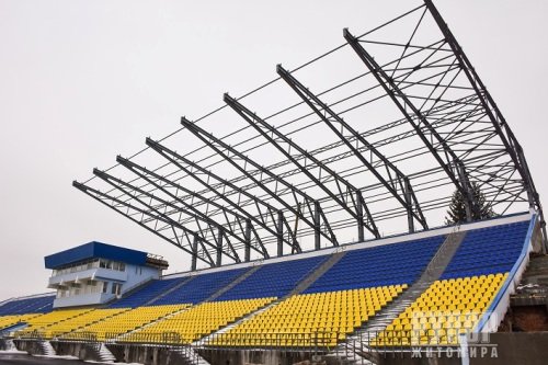 На центральному стадіоні «Полісся», який на сьогодні є наймасштабнішим проектом ДФФР на Житомирщині, погодні умови дозволяють продовжити будівельні роботи. Підрядник працює над монтажем накриття та освітлення. Про це зазначає заступник голови ОДА Роман Щебетов. «Накриття для трибуни змонтували майже до середини. Продовжувати далі не могли через старе накриття західної трибуни, тому його частково демонтували і сьогодні вже продовжують встановлення нових металевих конструкцій. Монтують освітлення та встановлюють огорожу», – розповів Роман Щебетов. Також на стадіону вже завершили заміну теплотраси та основні роботи на північній трибуні. Нагадаємо, що завдяки монтажу північної трибуни загальна кількість глядацьких місць на стадіоні «Полісся» складатиме майже 6,5 тисяч.