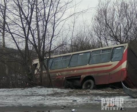 Дорожньо-транспортна пригода сталася 6 лютого близько 8.00 на 148 км автодороги Виступовичі - Могилів-Подільський, поблизу с. Андріївки Черняхівського району. Попередньо встановлено, що 22-річний водій автомобіля Mitsubishi Lancer, рухаючись у напрямку м. Коростеня, у результаті заносу виїхав на зустрічну смугу руху та скоїв зіткнення з рейсовим автобусом «Еталон» сполученням Словечно – Житомир, за кермом якого знаходився 43-річний житель Коростенського району. У результаті ДТП травми отримали четверо пасажирів легковика віком від 22 до 26 років та 34-річна пасажирка автобуса, всі жителі Житомирщини. Їх було доставлено до Черняхівської районної лікарні. За вказаним фактом розпочато кримінальне провадження за ознаками правопорушення, передбаченого ст.286 (Порушення правил безпеки дорожнього руху або експлуатації транспорту особами, які керують транспортними засобами) ККУ. Нині триває встановлення всіх причин та обставин події.