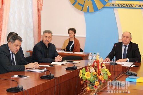 Голова обласної ради Володимир Ширма 12 лютого провів нараду щодо врегулювання проблемних питань, які пов’язані з діяльністю державного підприємства «Головинський кар’єр». Нарада відбулась в обласній раді за участі депутатів обласної ради Наталії Рибак, Віталія Вітусевича, Олександра Яковчука, Григорія Сташенка, Андрія Руденького, Володимира Кропивницького, представника Фонду державного майна України, Головинського селищного голови Івана Гетманенка, голови Черняхівської РДА Миколи Жилінського, працівників виконавчого апарату обласної ради та державного підприємства «Головинський кар’єр». У ході наради учасники напрацювали певні шляхи виходу із проблемної ситуації. По – перше, селищній раді рекомендовано оформити земельну ділянку у власність, на якій розташовано підприємство. Володимир Ширма запропонував селищному голові таку допомогу надати: «Підготуйте, будь ласка, відповідне звернення до Кабінету Міністрів України та на чергову сесію обласної ради», - зазначив він. Також запропонував, у разі необхідності, звернутись до обласної ради для виділення коштів на проведення грошової оцінки земель. На думку усіх учасників засідання, вся комунальна інфраструктура має перебувати на балансі селищної ради і будь-які події, у тому числі і зміна форми власності та власників, неповинні негативно впливати на життєдіяльність усього селища та робити місцевих жителів заручниками обставин. за інформацією сайту обласної ради