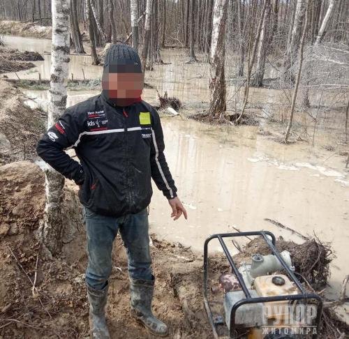 Близько 11.00 поблизу с. Андріївки Олевського району поліцейські помітили чоловіка, який збирався видобувати бурштин, розмиваючи ґрунт за допомогою мотопомпи.