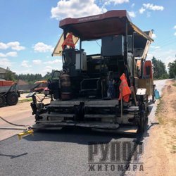 На окремих ділянках автомобільної дороги Т-06-11 Ставище – Брусилів – Попільня км 36+420 – км 41+870 на замовлення Служби автомобільних доріг у Житомирській області підрядна організація влаштовує вирівнюючий шар асфальтобетонного покриття.
