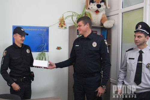 19 вересня у с. Ставищах розпочала роботу ще одна поліцейська станція, дванадцята - на Житомирщині. Тут належно обладнано в окремому кабінеті робочі місця дільничного офіцера та ювенального інспектора, а також створені необхідні побутові умови для відпочинку та цілодобового, у разі необхідності, режиму діяльності. До складу Ставищенської сільскої ради входять 4 села, де мешкають понад 1,1 тисячі громадян. Її особливістю є транзитність міжнародної дороги Київ-Чоп. Старший дільничний офіцер Андрій Потійчук працює тут з 2010 року і достатньо добре знає жителів цих населених пунктів, але питання забезпечення правопорядку найчастіше виникають якраз не з місцевими. Значно допомагає розібратись з багатьма питаннями встановлене відеоспостерження. На терирії сільської ради функціонує 10 камер візуального спостереження, а у найближчих планах встановлення ще 10. У робочому кабінеті дільничного також встановлений монітор з виведеним онлайн зображенням працюючих камер, а у разі потреби є можливість переглянути записи, що зберегіються на сервері у цьому ж приміщенні сільської ради. Заступник начальника ГУНП в Житомирській області Артем Лисогор відзначив увагу сільської ради до питань безпеки та стану правопорядку та від імені керівнитцва главку вручив Подяку її голові Олександру Замогильному. - Поліцейські станції стануть гарною базою для роботи дільничних офіцерів громад. Ми готуємо для цього працівників. Водночас для нас дуже важлива робота із забезпечення належних умов для їх роботи: це і робочі місця, і транспорт, і постійний доступ до відомчих баз через мережу інтернет, і врешті можливість відпочинку, у разі цілодобового чергування, - сказав Артем Лисогор. Для забезпечення якісної роботи заступник начальника ГУНП передав дільничному інспектору бодікамеру. Також у його розпорядження виділено службовий автомобіль ВАЗ-2110.