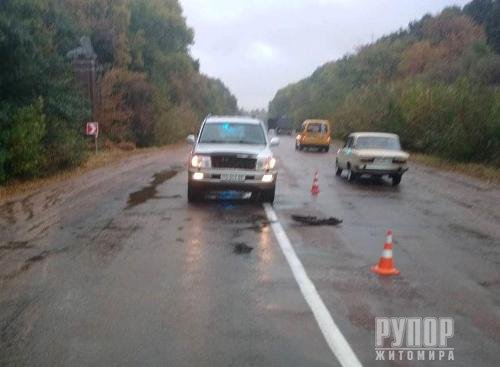 Дорожньо-транспортна пригода сталася 26 вересня близько 9:40 на одній із вулиць смт Черняхова. Попередньо, 64-річний водій автомобіля «Toyota Land Cruiser», рухаючись селищем, здійснив наїзд на 74-річного чоловіка, який переходив проїжджу частину дороги у невстановленому для цього місці. Як з’ясувалося згодом, пенсіонер їхав тією ж дорогою, проте припаркував свою автівку на узбіччі та вийшов на проїжджу частину підняти упавший під час руху двірник. У цей момент пенсіонер і потрапив під колеса автомобіля. Унаслідок дорожньо-транспортної пригоди, пішохід отримав тілесні ушкодження, з якими його було доставлено до реанімаційного відділення Черняхівської лікарні.Усі обставини події з’ясовуються у рамках розпочатого за ч.1 ст.286 (Порушення правил безпеки дорожнього руху або експлуатації транспорту особами, які керують транспортними засобами) КК України досудового розслідування. Поліція закликає усіх учасників дорожнього руху суворо дотримуватися правил безпеки, а водіям автомобілів нагадує: аби мати змогу контролювати транспортний засіб і вчасно уникнути дорожньої пригоди, обирайте безпечну швидкість руху, завжди враховуйте стан дорожнього покриття, погодні умови та навколишню обстановку. Не забувайте про ці елементарні заходи, що можуть врятувати ваше життя, здоров’я та вберегти інших учасників дорожнього руху!