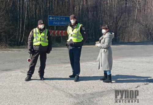 Із 6-ї ранку 18 березня на в’їздах і виїздах із райцентру, де було зафіксовано летальний випадок від COVID-19, організовано роботу спільних постів поліцейських і медпрацівників. Окрім того, наряди правоохоронців забезпечують правопорядок біля визначених місць обсервації у Радомишлі. Спільні превентивні заходи передбачені відповідними рішеннями Кабінету Міністрів України та органами місцевого самоврядування обласного та районних рівнів у межах профілактики виникнення та недопущення поширення коронавірусної інфекції серед місцевого населення. Відтак на в’їздах і виїздах м. Радомишля у п’яти напрямках організовані спеціальні пости поліції та медиків. Залучені до несення служби правоохоронці в обов’язковому порядку зупиняють транспортні засоби і проводять роз’яснювальну роботу серед водіїв і пасажирів про встановлені владою обмеження щодо життєдіяльності країни. У свою чергу, медики вимірюють температуру тіла людей, які пересуваються транспортними засобами. – Загалом у райцентрі працюють 8 поліцейських постів. Окрім в’їздів у місто, правоохоронці забезпечують правопорядок біля визначених місць, де на обсервації перебувають люди, які контактували з хворою місцевою жителькою, - прокоментував начальник Управління превентивної діяльності ГУНП Житомирщини Михайло Сорока. До несення служби на постах залучені поліцейські Радомишльського відділення, а також сусідніх з районом територіальних підрозділів ГУНП та нацгвардійці.