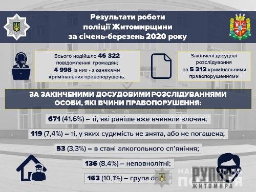 - Якщо порівняти з минулим роком, то загалом маємо позитивну динаміку, однак маю відмітити збільшення, хоч і не значне, кількості умисних вбивств (з 13 до 14), згвалтувань (з 3 до 5) та дорожньо-транспортних пригод, в яких загинули люди (з 17 до 21), - прокоментував начальник Головного управління Нацполіції Житомирщини Сергій Крупєй. – Звертаю увагу полісян: на 60% зросла кількість шахрайств ( з 178 до 281), хоча їх розкриття ми теж покращили на 70%, але, шановні громадяни, будьте обачними у всіх фінансових та майнових питаннях.