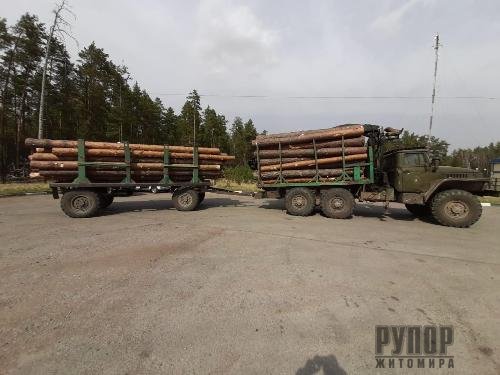 На Житомирщині поблизу державного кордону затримали дві вантажівки вщерть завантажені лісом