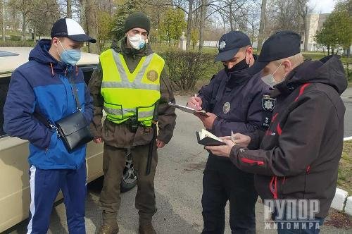 У містах Бердичеві, Житомирі, Коростені, Коростишеві та Малині введено додаткові патрулі для контролю за дотриманням громадянами карантинних обмежень. Для цього, окрім поліцейських, залучено нацгвардійців військової частини 3047.