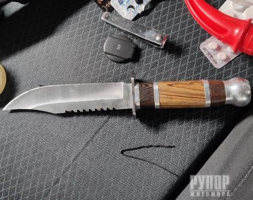 Під час огляду легковика марки «Seat», що слідував на виїзд з України через пункт пропуску «Виступовичі», прикордонники відділу «Овруч» спільно з митниками виявили мисливський ніж. Віз ножа в салоні автівки наш співвітчизник 1971 року народження. За даним фактом охоронці кордону проінформували співробітників Національної поліції, якими згодом і було вилучено знахідку та направлено на експертизу