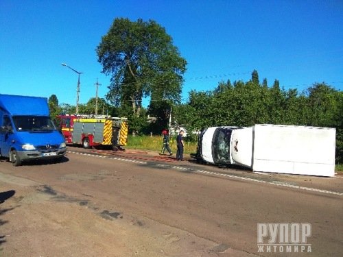 14 липня о 08:53 по лінії «101» м. Коростень надійшло повідомлення про те, що внаслідок дорожньо-транспортної пригоди по вул. Грушевського перекинувся автомобіль «Газель», і на дорогу витікає пальне. За вказаною адресою виїхали фахівці 8-ї Державної пожежно-рятувальної частини. Вже на місці події встановлено, що на проїжджій частині з перекинутої на лівий бік автівки витікала горюча рідина. Водій вибрався з транспортного засобу самотужки, медики госпіталізували його до лікувального закладу. Аби уникнути займання, рятувальники змили пальне з дороги. Далі за допомогою «лебідки» та троса вони поставили авто на колеса та відбуксирували його на узбіччя. Усі обставини надзвичайної події встановлюються правоохоронцями.