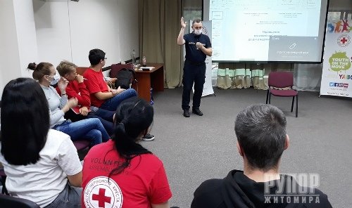 Упродовж трьох днів у Житомирі Товариством Червоного Хреста України проводиться центрально-західна регіональна Молодіжна асамблея з питань волонтерства. Сьогодні до асамблеї долучились рятувальники Житомирщини. Рятувальник-психолог поділився зі слухачами досвідом роботи в умовах надзвичайних подій та ситуацій. Присутні дізнались, які речі необхідно мати з собою, вирушаючи на будь-яку пригоду. Головним закликом до всіх було «Не можеш допомогти – головне не нашкодь». Гості з Рівненської, Чернівецької, Вінницької та Житомирської областей навчились правильно евакуйовуватись з приміщення та користуватися вогнегасником. Також фахівець ДСНС провів з присутніми психологічний тренінг «Як боротися зі стресом». Під час живого спілкування колеги з різних регіонів країни ділилися своїми власними порадами та дослухались до інших, наводили приклади з власного професійного досвіду. Окремо рятувальник-психолог зупинився на тому, як поводити себе в натовпі, особливо при виникненні надзвичайної події чи ситуації. Наживо продемонстрував приклади пересування у натовпі, як піднятись після падіння та перелічив найпопулярніші помилки, що призводять до загибелі й травмування. Отримані знання та вміння допоможуть волонтерам правильно діяти у разі надзвичайних подій та ситуацій, а також стануть у нагоді людям, які потребують допомоги.