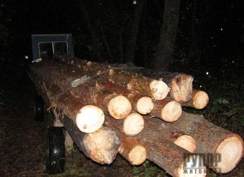 На Житомирщині поліцейські зупинили два незареєстровані трактори з нелегальним лісом