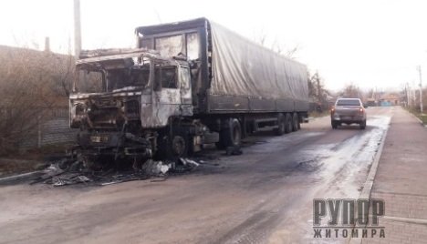 8 грудня о 22:40 по лінії «101» надійшло повідомлення про те, що в одному із провулків у м. Бердичів горить вантажівка «MAN». До рятувальників зателефонували мешканці сусідніх житлових будинків, біля яких стояв автомобіль. По прибуттю чергового караулу вогнеборців до місця виклику полум’ям було охоплена кабіна вантажівки, дах якої вже впав всередину. Подавши піну на ліквідацію пожежі, за 15 хвилин бійці ДСНС локалізували загоряння. Крім того, їм довелося розбирати металеві конструкції та речі в кабіні, аби запобігти повторному займанню. Подальшого розповсюдження полум’я на причеп рятувальники не допустили. О 23:57 пожежа ліквідована. Ще одна вантажівка вже під ранок 9 грудня горіла в смт Гришківці Бердичівського району. Під час руху в автомобілі «DAF» заклинили гальмівні колодки, і від нагріву металу відірвало палаюче колесо. Бійці ДСНС швидко загасили колесо. Вміст кузова та кабіна вантажівки не постраждали. Причини обох пожеж наразі встановлюють фахівці.
