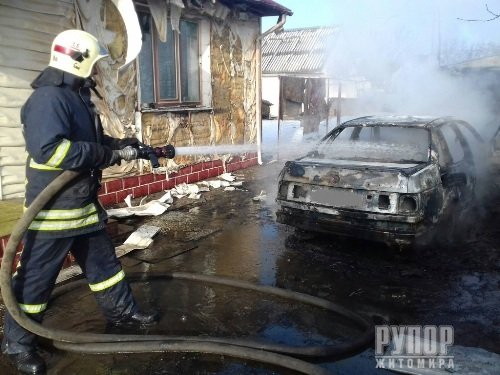 В Житомирській області вогонь з палаючого автомобіля перекинувся на будинок