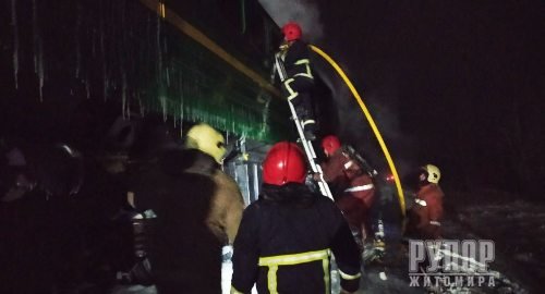 12 лютого о 02:04 до оперативно-координаційного центру Управління ДСНС України у Житомирській області надійшло повідомлення про те, що поблизу с. Красносілка Коростенського району в тепловозі пасажирського потягу сполученням Львів – Бахмут сталася пожежа. На місце події було направлено фахівців 37-го Державного пожежно-рятувального поста та 8-ї Державної пожежно-рятувальної частини, а також пожежний потяг Коростенської дирекції залізничних перевезень регіональної філії «Південно-західної залізниці». По прибуттю до місця виклику встановлено, що площа пожежі складає 20 кв.м. дизельної установки тепловоза. Завдяки спільним оперативним діям о 02:57 пожежу локалізовано, о 03:58 – ліквідовано на площі 20 кв.м. Травмованих та загиблих внаслідок події немає. На гасіння пожежі від ДСНС залучалося 2 одиниці техніки та 9 чоловік особового складу. О 05:00 рух залізничною колією відновлено. Причина пожежі встановлюється фахівцями.