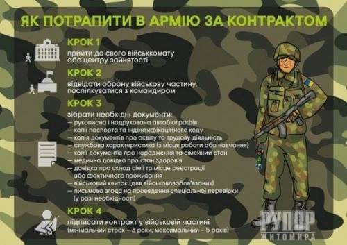Про те, як потрапити на військову службу за контрактом та розміри одноразової грошової допомоги військовослужбовцям після укладання ними першого контракту (з 01 січня 2021 року) дізнавайтеся з ІНФОГРАФІКИ нижче.