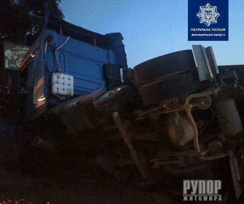 Учора ввечері інспекторам патрульної поліції надійшло повідомлення, що на 221-му кілометрі Виступовичі — Житомир — Могилів-Подільський трапилась ДТП без травмованих. Як встановили патрульні, водій вантажного автомобіля DAF не обрав безпечної швидкості руху, не впорався з керуванням та з'їхав до кювету, де перекинувся. На водія транспортного засобу патрульні оформили протокол за ст. 124 (Порушення ПДР, що стало причиною ДТП) КУпАП. Водії, дотримання правил дорожнього руху є запорукою вашої безпеки.