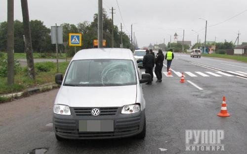 Дорожньо-транспортна пригода сталася 23 вересня близько 07:10 на 214 км автодороги Виступовичі - Могилів-Подільський. Унаслідок наїзду автомобілем травми отримала житомирянка. Попередньо, водій автомобіля «Volkswagen Caddy», 75-річний житель Вінницької області, рухаючись у с. Осиково Бердичівського району в напрямку м. Житомира, учинив наїзд на жінку, яка перетинала дорогу на пішохідному переході. У результаті ДТП пішохід, 46-річна житомирянка, отримала травми та була ушпиталена до травматологічного відділення Бердичівської лікарні. Нині слідчі з’ясовують всі обставини автопригоди у рамках розпочатого кримінального провадження.