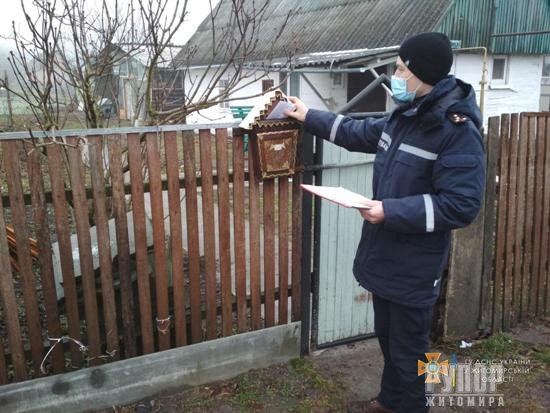 В рамках профілактичної роботи рятувальники здійснюють заходи щодо попередження надзвичайних подій, загибелі та травмування людей на них. Зокрема, на постійній основі відвідуються категорії ризику аби попередити виникнення надзвичайних подій в помешканнях таких родин та роз’яснити їм правила безпеки. Сьогодні такий захід відбувся на території смт Романів Житомирського району, де рятувальники обійшли близько 50 домоволодінь. У ході заходу вогнеборці наголошували, що зазвичай причиною виникнення пожеж у помешканнях є нехтування населенням елементарних правил пожежної та, в першу чергу, власної безпеки. Окрему увагу в бесідах з господарями житла приділялась недопущенню куріння в ліжку та приміщеннях. Також рятувальники нагадали дорослим та дітям правила поведінки на кризі. Наголосили на тому, що забороняється виходити на тонкий лід, а дітворі категорично забороняється кататися на льоду без нагляду дорослих. Ці правила особливо важливо нагадати, адже попереду зимові канікули і багато хто зі школярів буде залишений вдома на самоті. Не менш пріоритетним в тематиці безпеки наразі є використання піротехнічних виробів. Рятувальники акцентували увагу населення на використанні саме сертифікованої піротехнічної продукції та обов’язковому при цьому дотриманню вимог безпеки. А батькам суворо вказали на забороні ігор їх дітей з різноманітною піротехнікою. Під час заходу всім мешканцям вручалась видавничо-друкарська продукція протипожежної спрямованості.