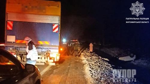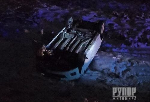 На Житомирщині легковик після ДТП злетів у кювет та перекинувся