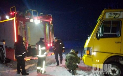О 17:11 31 січня за екстреним номером «101» надійшло повідомлення про те, що необхідна допомога по відбуксируванню шкільного автобуса, який через снігові замети знесло з дороги між селами Михайлівка та Липно Любарської територіальної громади Житомирського району. Телефонував водій транспортного засобу. Також він зазначив, що в автобусі перебувають діти. За вказаними координатами негайно виїхало відділення 12-ої державної пожежно-рятувальної частини. З’ясувалося, що автобус знесло з дороги у поле. В ньому знаходилося 18 дітей та двоє дорослих. За допомогою тросу рятувальники витягнули транспортний засіб з поля на сільську дорогу. Проте через великі перемети автобус забуксував і не міг самостійно їхати далі. Аби допомогти водію, рятувальники близько 800 метрів за допомогою тросу тягнули автобус до основної траси. Внаслідок надзвичайної події ніхто не постраждав. Подібний випадок стався вже сьогодні під ранок у Коростенському районі. Там застрягла у снігових заметах швидка допомога, що їхала на виклик у с.Павловичі. Проте через ожеледицю автомобіль рятувальників не міг рухатися. Аби допомогти водію, рятувальники залучили на допомогу трактор місцевого сільгосппідприємства, що працював поруч. І лише з другої спроби спільними зусиллями вдалося витягнути швидку допомогу з замету.