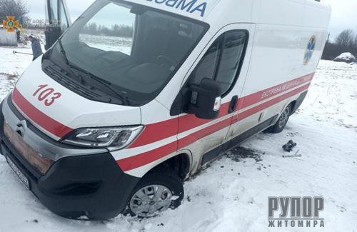 На Житомирщині із засніженого узбіччя дороги рятували «швидку»
