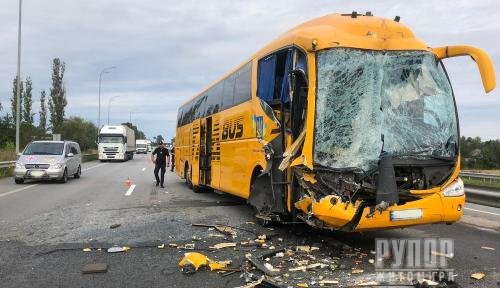Дорожньо-транспортна пригода сталася вранці 9 серпня на 209 км автодороги Київ – Чоп, неподалік с. Броників Новоград-Волинського району. Попередньо, водій автомобіля «Mercedes-Benz Sprinter», рухаючись у напрямку м. Житомира, застосував екстрене гальмування, відреагувавши на маневр водія мотоцикла «Musstang MT150-F», який почав перелаштовуватися з однієї смуги руху в іншу. У результаті водій мікроавтобуса «Renault Traffic», що рухався позаду, здійснив зіткнення з попереднім транспортним засобом. Потому відбулось «ланцюгове» зіткнення й інших автомобілів, що рухалися за ними: вантажівки «Volvo FH» з напівпричепом та автобуса «Volvo Irizar». У результаті ДТП травми отримала 21-річна пасажирка автобуса «Volvo», жителька Черкащини. Їй надали медичну допомогу на місці події. Нині триває встановлення всіх причин та обставин події. Водночас поліція нагадує водіям: обирайте таку швидкість руху та безпечну дистанцію, щоб мати змогу постійно контролювати свій транспортний засіб і вчасно реагувати на зміну дорожньої ситуації.