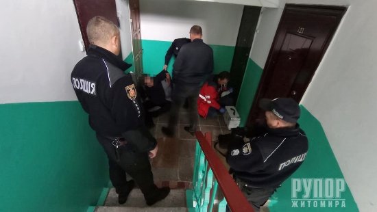 Близько півдня до поліції зателефонувала жителька райцентру і повідомила, що у під’їзді своєї 5-поверхівки вони з матір’ю утримають небезпечного чоловіка. Для з’ясування обставин на місце спочатку прибули патрульні поліцейські сектору реагування Бердичівського райвідділу, а згодом і слідчо-оперативна група.