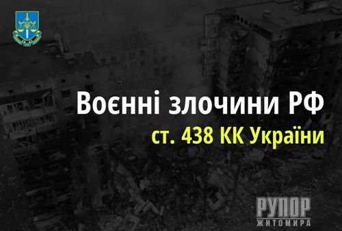 У п’ятницю, 16 грудня, за процесуального керівництва Коростенської окружної прокуратури, розпочато досудове розслідування за фактом порушення законів та звичаїв війни (ч. 1 ст. 438 КК України). Слідством установлено, що сьогодні вранці, близько 09.50 год, під час масованого обстрілу збройними силами російської федерації українських міст, ворог завдав ракетного удару по об’єкту цивільної інфраструктури у Коростенському районі. Ракетний удар спричинив пожежу та пошкодження обладнання, що призвело до знеструмлення помешкань мирних жителів Коростенського району. Будь-які військові об’єкти на цій території та поблизу відсутні. За попередньою інформацією, окупанти обстріляли цивільний об’єкт крилатою ракетою. Наразі пожежу ліквідовано. Оперативно-слідча група у складі прокурора Коростенської окружної прокуратури проводить огляд місця події та документування факту скоєння воєнного злочину. Досудове розслідування, за процесуального керівництва Коростенської окружної прокуратури, проводить Коростенське райуправління поліції.