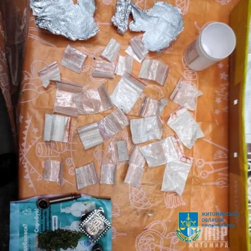 За процесуального керівництва прокурорів Житомирської обласної прокуратури правоохоронцю повідомлено про підозру у незаконному придбанні, зберіганні та пересилання з метою збуту, а також незаконному збуті психотропної речовини (ч. 1 ст. 307 КК України). Слідством установлено, що незаконним обігом психотропних речовин займався 29-річний помічник чергового одного з ізоляторів тимчасового тримання ГУНП в області. Так, підозрюваний, схильний до вживання психотропних речовин, не лише купував їх для власного використання, але й реалізовував «товар» в іншу область. Зокрема, задокументовано факт придбання ним у Житомирі у жовтні 2022 року декількох зіп-пакетів з психотропною речовиною, які він з метою конспірації запакував до внутрішньої частини динаміку колонки та відправив поштою своєму знайомому у Миколаївську область. Під час обшуку за місцем проживання виявлено і вилучено зелену подрібнену речовину, схожу на рослини конопель, а також набої до нарізної вогнепальної зброї. Наразі вирішується питання щодо обрання підозрюваному запобіжного заходу у виді тримання під вартою та відсторонення від посади. Викрито злочин обласною прокуратурою спільно з Житомирським управлінням Департаменту внутрішньої безпеки Нацполіції України та другим слідчим відділом (з дислокацією у м. Житомирі) Територіального управління Державного бюро розслідувань, розташованого у м. Хмельницькому, який проводить досудове розслідування.