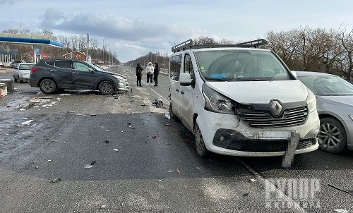 На Звягельщині зіштовхнулись чотири автомобіля: поліція з’ясовує обставини. Дорожньо-транспортна пригода сталася 6 лютого близько 11:45 на 235 км траси Київ-Чоп, поблизу села Анети. За попередньою інформацією, водій автомобіля «Hyundai Santa Fe», 42-річний житель Дніпропетровської області, рухаючись у напрямку м. Рівного, здійснив зіткнення з автомобілем марки «Renault Trafic», який стояв перед пішохідним переходом. Унаслідок цього бус зіткнувся з авто «Audi», який знаходився у правій смузі та з автомобілем «Volkswagen», що стояв перед нерегульованим пішохідним переходом у лівій смузі руху. У результаті ДТП тілесні ушкодження отримали троє пасажирів «Hyundai», 30-річна жінка та двоє дітей віком 3 та 11 років, жителі Дніпропетровщини, а також пасажирка «Renault Trafic», 39-річна киянка. Їх доставили до лікарні та надали медичну допомогу без госпіталізації. Нині триває встановлення всіх обставин ДТП. Водночас поліцейські застерігають: шановні водії, керуючи автомобілем в умовах складних погодних умов, зокрема, снігопаду та ожеледиці, обирайте мінімально можливу швидкість руху, обов’язково дотримуйтесь належної дистанції між транспортними засобами та не виконуйте жодних різких маневрів. Від обачності та обережності на дорозі залежить життя і здоров’я ваше та інших учасників руху.