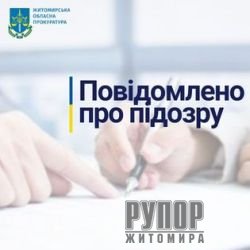 За процесуального керівництва ювенальних прокурорів Житомирської окружної прокуратури, на підставі зібраних слідством доказів, директору приватного товариства та інженеру з технагляду (пособництво) повідомили про підозру у заволодінні чужим майном шляхом зловживання службовим становищем та у службовому підробленні (ч. 3 ст. 191, ч. 1 ст. 366 КК України).