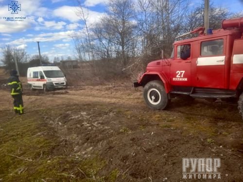 17 березня о 12:35 до Служби порятунку «101» надійшло повідомлення про те, що у с. Теньківка Курненської територіальної громади Житомирського району необхідна допомога водію швидкої допомоги, що опинилась на бездоріжжі. На місці з’ясувалося, що медики поверталися з виклику, а у спецавтомобілі знаходилася хвора бабуся, яка потребувала госпіталізації. Рятувальники витягнули транспортний засіб за допомогою лебідки на проїжджу частину дороги, після чого водій швидкої допомоги зміг самотужки продовжити рух.