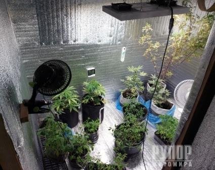 Правоохоронці провели санкціонований обшук за місцем проживання 36-річного чоловіка. Як з’ясувалось, він облаштував в будинку особливі грядки для вирощування нарковмісних рослин. А також зберігав кілька пакунків з готовим для споживання наркотичним засобом. Поліцейські проводили заходи із запобігання незаконному обігу наркотиків у м. Коростишеві. Відтак у межах кримінального провадження, розпочатого за оперативною інформацією, й провели обшук. В одній з кімнат господар облаштував місце для вирощування рослин у штучних умовах, з контролем освітлення, температури та вологості. Тож у горщиках з-поміж звичайної розсади городини поліцейські виявили й рослини характерного вигляду. Попередньо, чоловік вирощував нарковмісні коноплі. Також правоохоронці виявили в оселі паперові та поліетиленові пакунки з висушеною рослинною масою та чорною речовиною. Усе це слідчі вилучили та направили на дослідження до Науково-дослідного експертно-криміналістичного центру МВС. Попередня правова кваліфікація події – ч. 1 ст. 309 (Незаконне виробництво, виготовлення, придбання, зберігання, перевезення чи пересилання наркотичних засобів, психотропних речовин або їх аналогів без мети збуту) КК України. Такі протиправні дії караються штрафом від однієї тисячі до трьох тисяч неоподатковуваних мінімумів доходів громадян або виправними роботами на строк до 2 років, або арештом на строк до 6 місяців, або обмеженням волі на строк до 5 років.