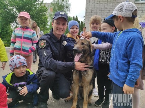 Щодня у навчальних закладах правоохоронці проводять «уроки безпеки» для дошкільнят та ліцеїстів. Вони нагадують дітям по правила поведінки на вулиці та вдома, навчають дій у кризових ситуаціях, а також розповідають допитливим учасникам про свою професійну діяльність. 17 травня поліцейські та рятувальники провели такий захід у закладі дошкільної освіти №34 м. Житомира. Ювенальні поліцейські навчали малят дорожної грамоти: як перейти дорогу, коли не працює світлофор, що означають жести регулювальника та як дорожні знаки допомагають водіям та пішоходам дотримуватися Правил дорожнього руху. Поліцейські офіцери громади розповідали дітям про призначення обладнання, яке знаходиться в службовому автомобілі. Обговорили дії у разі знайдення нічийних іграшок, телефонів або інших підозрілих предметів. Також повторили номери телефонів екстрених служб. Бажаючі приміряли захисні обладунки та уявили себе правоохоронцями за кермом службового автомобіля. Поліцейські охорони розповіли дітлахам про призначення тривожних кнопок, якими обладнані торговельні заклади та установи. Інспектори Кінологічного центру ГУНП області показали, як працюють службові собаки. Вони чітко виконували команди поліцейських, навіть показані жестами. А ще продемонстрували як вміють знаходити різні предмети та ідентифікувати їх господарів. Рятувальники нагадали дітям про небезпеку ігор із вогнем, а також про правила безпечної поведінки під час відпочинку біля водойм або у лісі.