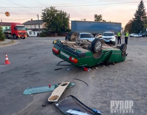 Як стало відомо https://ruporzt.com.ua/, 7 вересня близько 16:40 до поліції надійшло повідомлення про дорожньо-транспортну пригоду, що сталася на перехресті вулиць Дубрівське Шосе - Костельна у місті. Попередньо, 27-річна жителька Донеччини, керуючи автомобілем «Chevrolet Aveo», допустила зіткнення з автомобілем «ВАЗ», за кермом якого перебував 36-річний житель Баранівської громади. Від удару «ВАЗ» перекинувся. У результаті автотрощі травми отримали двоє пасажирів «Chevrolet Aveo», жителі Донеччини, віком 26 та 45 років. Їм надали медичну допомогу у місцевій лікарні без ушпиталення. За цим фактом слідчі Звягельського районного відділу поліції розпочали кримінальне провадження за ч. 1 ст. 286 (Порушення правил безпеки дорожнього руху або експлуатації транспорту особами, які керують транспортними засобами) ККУ. Триває з’ясування всіх обставин події.