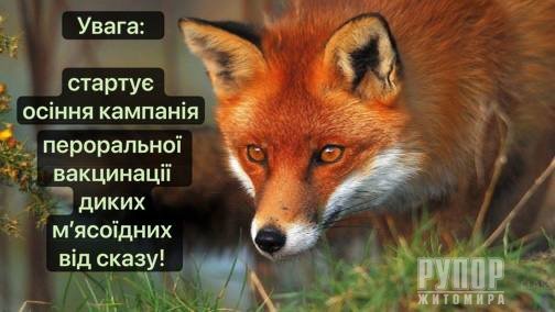 На Житомирщині стартує кампанія пероральної імунізації диких м’ясоїдних тварин проти сказу