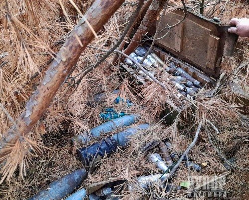 Як стало відомо https://ruporzt.com.ua/, 18 жовтня у Радомишльській громаді гостював 60-річний житель Київщини. Чоловік вирушив на «тихе полювання» до лісу, де й натрапив на «схрон». Зрозумівши, що саме він знайшов, одразу ж повідомив правоохоронців про це. Завдяки виваженим діям грибника вдалося запобігти трагедії. На місці події працювали слідчо-оперативна група відділення поліції № 3 (Радомишль) Житомирського райуправління та поліцейські-вибухотехніки. Правоохоронці нарахували понад 700 патронів, більше десятка різних гранатних пострілів, понад двох десятків артилерійських пострілів, металеві ящики з боєприпасами, метальний заряд до артилерійського пострілу, близько 16 снарядів різного калібру, ще 4 постріли та 3 фрагменти снарядів. Поліцейські-вибухотехніки виявили сліди корозії та механічні пошкодження на боєприпасах, тож вони становили особливу небезпеку та підлягали знищенню на місці. Відтак фахівці ліквідували виявлене. Нині слідчі встановлюють походження боєприпасів у межах відкритого кримінального провадження за ч. 1 ст. 263 (Незаконне поводження зі зброєю, бойовими припасами або вибуховими речовинами) КК України.