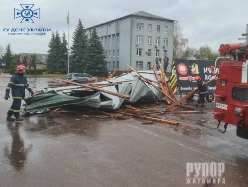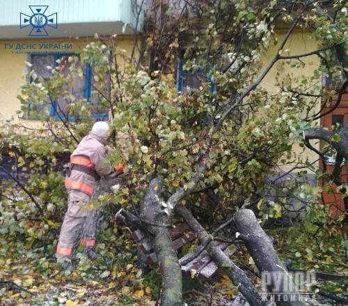 Як стало відомо https://ruporzt.com.ua, упродовж доби надзвичайники продовжували ліквідовувати наслідки негоди, що вирувала на території області. З автошляхів та проїжджих чистин прибрано 90 повалених сильними поривами вітру дерев та п’ять разів фахівці ДСНС виїжджали на демонтаж аварійних конструкцій. Зокрема, 28 жовтня до Служби порятунку “101” надійшло повідомлення про те, що близько 15-ти дерев впали на проїжджу частину дороги, що веде до с. Кропивня Коростишівської громади, та перекрили рух автомобілям в обох напрямках. Рятувальники, які виїхали до місця події, за допомогою бензопили розрізали стовбури дерева та прибрали гілля з проїжджої частини дороги. За годину рух було відновлено. У смт Хорошів внаслідок негоди з адмінбудівлі суду вітром зірвало декілька листів шиферу, вони впали на тротуар та проїжджу частину. За допомогою пожежного автомобіля рятувальники розтягнули шифер та звільнили дорогу для руху транспорту. Водночас до радомишльських рятувальників надійшло прохання демонтувати пошкоджений негодою шифер із покрівлі будівлі центральної районної лікарні. Ситуація була критичною, адже частина покрівлі будь-якої миті могла впасти на подвір’я. Бійці ДСНС за допомогою рятувального спорядження зняли шифер із даху будівлі. А в місті Бердичів рятувальникам за допомогою спецінструменту довелося демонтувати пошкоджену вітром балконну раму на 5-му поверсі багатоповерхівки, адже конструкція ледве трималася і створювала загрозу для перехожих .