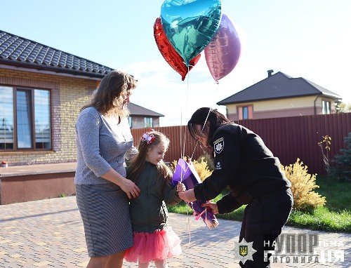 На Житомирщині поліцейські привітали з Днем народження доньку загиблого колеги
