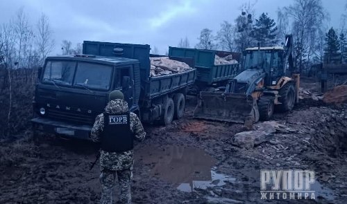 Як стало відомо https://ruporzt.com.ua/, реалізовуючи завчасно отриману оперативну інформацію прикордонники 9 загону імені Січових Стрільців під час здійснення спостереження, за допомогою безпілотного літального апарату, задокументували, в межах Олевської об’єднаної територіальної громади, що на Житомирщині, факт видобутку каміння-пісковика. Прибувши на місце військовослужбовці виявили два транспортні засоби марки «КАМАЗ» з причепами завантажені видобутим камінням та екскаватор, що здійснював їх навантаження. Займались таким видом діяльності троє чоловіків не маючи на це жодних дозволів та відповідних документів. За даним фактом прикордонники повідомили відповідні органи та на місце події викликали слідчу-оперативну групу від Нацполіції. Також правоохоронцям направлено повідомлення про виявлення ознак кримінального правопорушення передбаченого ст. 240 ККУ «Порушення правил охорони або використання надр». Заходи з перевірки тривають.