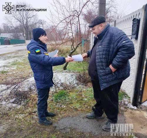 12 березня одночасно в декількох населених пунктах Житомирщини розпочалася активна профілактична робота щодо недопущення пожеж в побуті та загибелі людей на них. Рятувальники вирішили сьогодні поспілкуватися з мешканцями села Привороття Брусилівської територіальної громади, Чижівка Чижівської територіальної громади та Підлуби Ємільчинської громади. В ході спілкування фахівці Служби порятунку нагадали людям правила пожежної безпеки в побуті та на вулиці, зокрема ніколи не залишати без нагляду увімкнені в розетку електричні прилади – телевізор, праску, подовжувачі тощо, використовувати лише справні та сертифіковані нагрівальні прилади. Громадянам роз'ясняли небезпеку залишення без нагляду відкритого вогню, а також закликали обережно поводиться з сірниками, газовими та бензиновими запальничками. “Також слід пам’ятати, що поступово наближається тепло, і як наслідок, люди масово починають випалювати сухостій. Це найгарячіша пора для вогнеборців, адже в минулі роки в такий період в деякі дні їм довелося гасити 100 і більше пожеж в екосистемах. Тому рятувальники вкотре закликали мешканців сіл, що відпрацьовувалися сьогодні, не провокувати такі пожежі! Зокрема, не розводити відкритий вогонь біля лісової зони, в полях, а також не кидати недопалки та сірники на суху трав’янисту підстилку.”- коментують фахівці ДСНС. Наразі така профілактична робота триває по всій області, надзвичайники намагаються поспілкуватися та роз’яснити ази безпеки кожному громадянинові. А тим селян, кого не застають вдома, залишають профілактичні листівки в поштових скриньках.