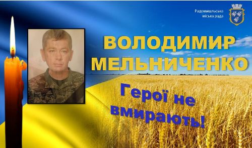 І знову втрати… Знову пекучий біль… Радомишльська громада втратила свого сина, воїна-захисника, ГЕРОЯ – МЕЛЬНИЧЕНКА Володимира Павловича. «Наша громада зустрічатиме свого Героя! Чин прощання з загиблим Героєм відбудеться 17 квітня 2024 року: - 11:00 Свято-Миколаївський храм; - 12:00 Меморіал Слави. Прийдіть, віддійте шану захиснику! Вічна тобі пам’ять, наш Герою! Володимир загинув, захищаючи Україну, свою родину та кожного з нас. Вшануймо його гідно! На жаль, Герої вмирають! Але вони навічно будуть жити в наших серцях!», - повідомляють в Радомишльській міській раді.