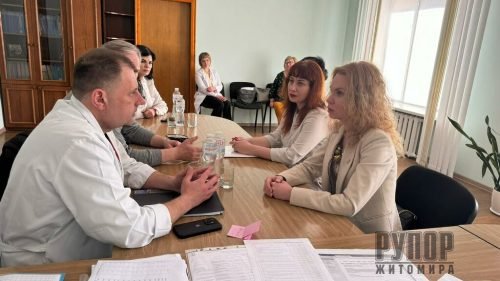 Перша заступниця начальника Житомирської ОВА Наталія Остапченко, 02 травня, перебувала з робочим візитом на Бердичівщині. У супроводі керівництва Департаменту охорони здоров’я Житомирської ОВА вона відвідала КНП “Бердичівська міська лікарня”, де провела зустріч з начальником Бердичівської районної військової адміністрації Людмилою Димидюк, Бердичівським міським головою Сергієм Орлюком та директором міської лікарні Костянтином Гінгуляком.