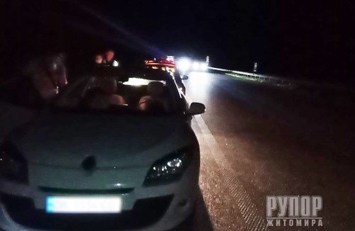 Повідомлення про подію, що сталася на трасі Київ-Чоп, поблизу с. Броників, надійшло до поліції увечері 3 травня. На місці працювала слідчо-оперативна група Звягельського райвідділу поліції. Попередньо, 30-річний житель Рівненщини, керуючи автомобілем «Renault Megane», здійснив наїзд на 29-річну жительку с. Марушівки Брониківської громади. У результаті ДТП жінка отримала травми та була доставлена до лікарні. Наразі відомості про подію внесені до Єдиного реєстру досудових розслідувань за ч. 1 ст. 286 (Порушення правил безпеки дорожнього руху або експлуатації транспорту особами, які керують транспортними засобами) КК України.