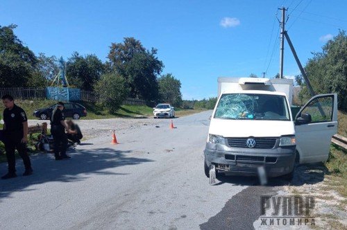 Дорожньо-транспортна пригода сталася 11 серпня близько 11:30 у с. Ходурках Городницької громади. Попередньо, 25-річний житель Ємільчинської громади, керуючи мотоциклом «Lifan», здійснив зіткнення з автофургоном «Volkswagen», за кермом якого перебував 57-річний житель Рівненщини. У результаті водій двоколісника та його 21-річний пасажир, житель Городницької громади, отримали травми. Їх обох було доставлено до лікарні. За вказаним фактом слідчі Звягельського райвідділу поліції розпочали кримінальне провадження за ч. 1 ст. 286 (Порушення правил безпеки дорожнього руху або експлуатації транспорту особами, які керують транспортними засобами) КК України.